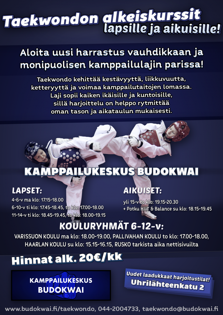 12 500€ lasten ja nuorten toimintaan Budokwai Taekwondo sai vuonna 2017 15 000€ OKM:n seuratukea kehittääkseen seuran lasten- ja nuorten toimintaa. Tukea haettiin seuraavien toimien kehittämiseen: Lähiliikunnan osahanke: seuran pääsalin lisäksi lähiöalueilla järjestettävä lasten harrastustoiminta alkeis- sekä jatkoryhmien mahdollistamiseksi…