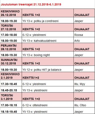 Joululoman harjoitusaikatauluOn11.12.2018InUutiset Joululoman harjoitusaikataulu on voimassa 21.12.2018-6.1.2018.
