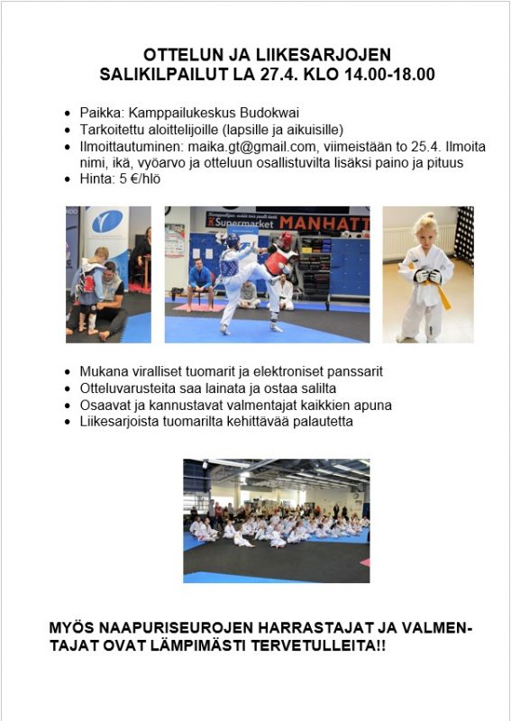 • Lisäinfoa: https://www.suomentaekwondoliitto.fi/taekwondo-festiv…/info/